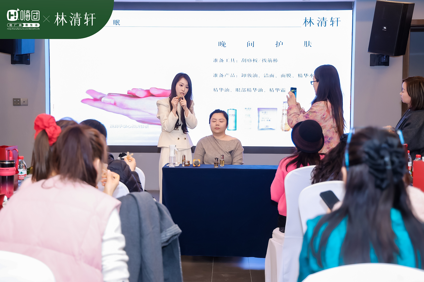 次日,一场精致而专业的护肤沙龙悄然展开。林清轩的专业护肤讲师亲临现场,为大家带来了一场关于山茶花护肤奥秘的深度分享。从山茶花的生长特性到核心成分的萃取技术,从肌肤的结构原理到产品的正确使用方法,深入浅出、干货满满。